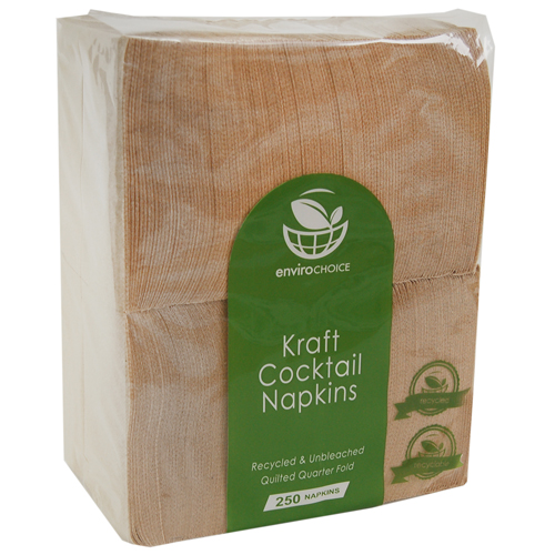 Envirochoice Kraft Napkins Cocktail Quilted QTR Fold 240x240mm