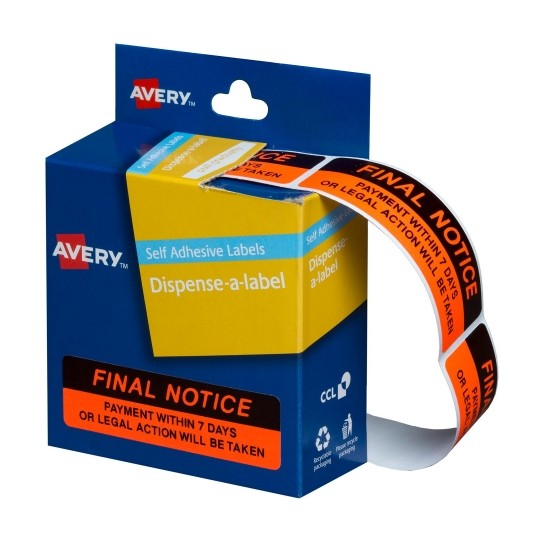 Avery Final Notice Dispenser Labels 64x19 Red 125