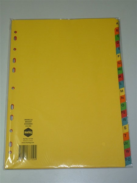 Marbig Dividers Manilla A4 A-Z Tab Bright Colour